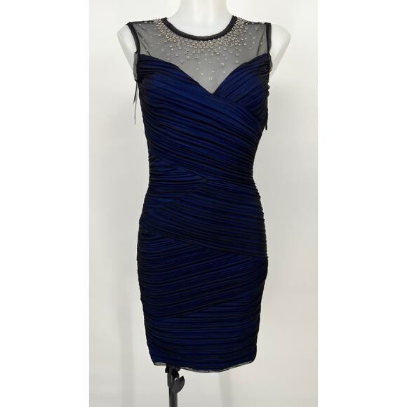 BCBG Maxazria Camira Dress Sz XS Black Blue NEW Bandage BodyCon Mini Embellished