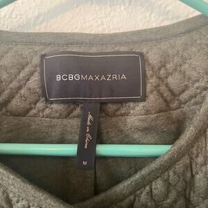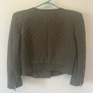 BCBG Maxazria Crop Green Moto Jacket Quilted Structured Shoulders Size Medium