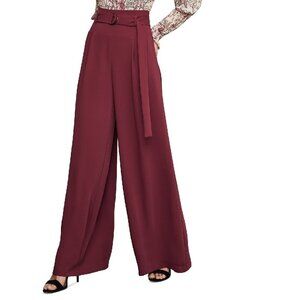 💥 BCBG Maxazria D-Ring Belted Wide-Leg Matte Satin Pants