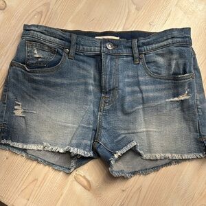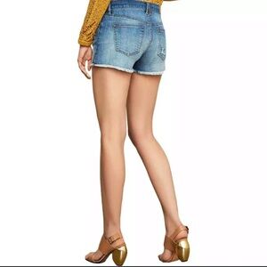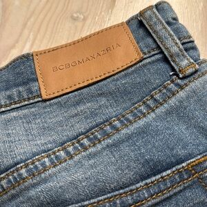 BCBG Maxazria Denim Shorts. Zipper and fly closure. Five pocket style. 15.5@ across waist, 9.5” rise, 2.5” inseam.