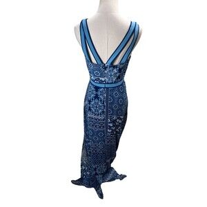 BCBG Maxazria Dress Size 4 Women's Blue Geometric Sleeveless Maxi