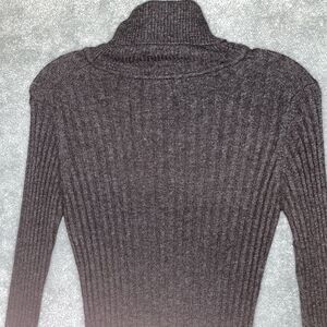BCBG Maxazria Dress Womens Large Grey Wool Angora Cashmere Turtleneck Ribbed