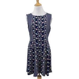 BCBG Maxazria Dress Womens M Medium Multi Floral Sleeveless Piping A-Line Mini