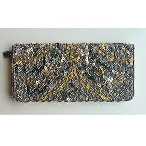 BCBG Maxazria Evening Clutch Metallic Gunmetal Silver Gold Beads Sequins NWOT