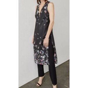 BCBG Maxazria Faux Leather Hadley Tunic Embroidered Long Black Boho Goth Size S