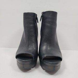 BCBG Maxazria Hasten Women's Black Peep Toe Platform Leather Bootie US Size 8.5M