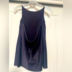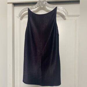 Beautiful blouse features a high neckline in the front, spaghetti straps, and a low cowl back.