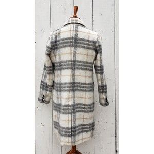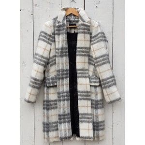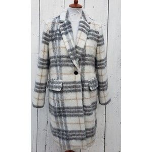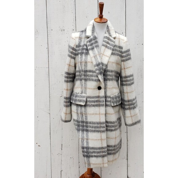 BCBG Maxazria Ivory Grey Plaid Coat Peacoat W Pockets Button Closure Sz XS NEW