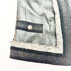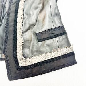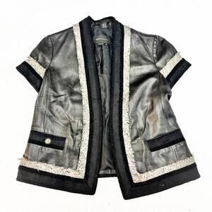 BCBG Maxazria Leather Fringe Accent Blazer Jacket Contrast Trim MINT Size Small