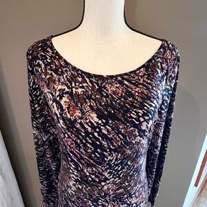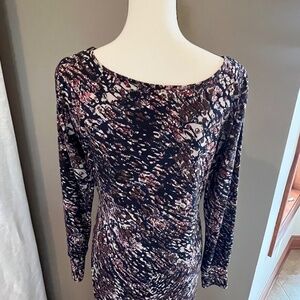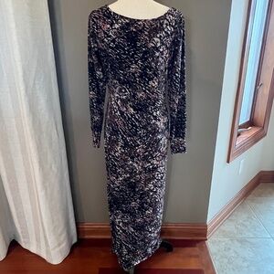 BCBG Maxazria Long Sleeve Abstract Maxi Dress Scoop Neck, Size Medium