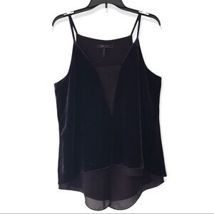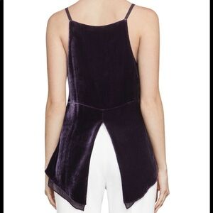 BCBG Maxazria Lyssa Purple Velvet Spaghetti Strap Asymmetric Blouse