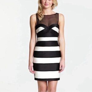 BCBG Maxazria Mara Black White Stripe Mesh Bandage Cocktail Party Dress Sz 8 EUC