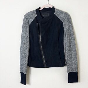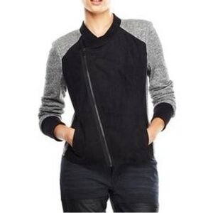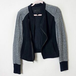 BCBG Maxazria Marc shredded back bomber jacket size small black