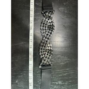 BCBG Maxazria- Med- Y2K Waist Hip stretch belt- Gunmetal Braide Gem Accents