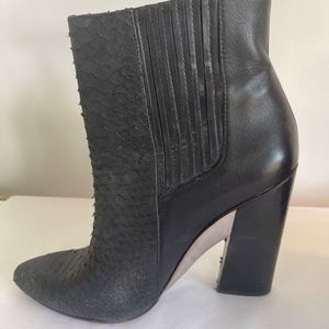 BCBG Maxazria Metild Black Snake Embossed Leather High Heel Ankle Boots Size 9.5