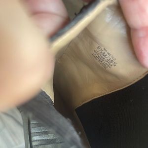“Beautiful BCBG Maxazria Runway Melted Black Leather Embossed Snakeskin Booties are Pre-Owned but are in beautiful condition. The leather upper is in great condition , there are no holes, tears, or discoloration. The side Chrome is in good condition as well. The heel has a couple small scratches on the underside that are not noticeable and do not inhibit the structure or functionality at all. Please see the photo showing the bottom of the bootie. Beautiful craftsmanship and would be an accent to anyones wardrobe.”
