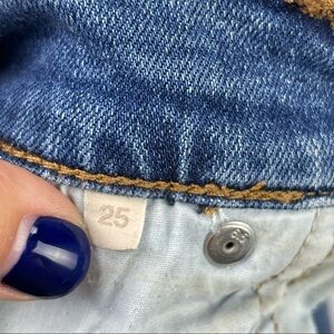 Excellent condition BCBG Maxazria Mid Rise Straight Slim Jeans Light Blue Wash Size 25.