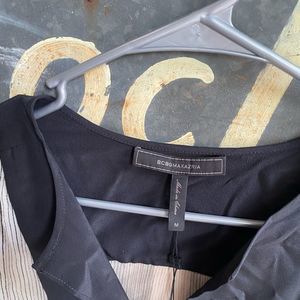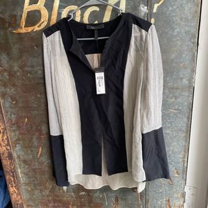 BCBG Maxazria NWT "Joe" Black White Stripe Blouse Size Medium, MSRP $228