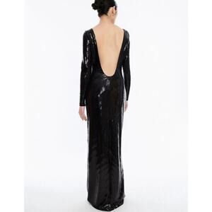 BCBG Maxazria NWT Sz S Sheridan Backless Sequin Black Long Dress Gown Longsleeve