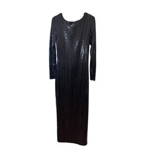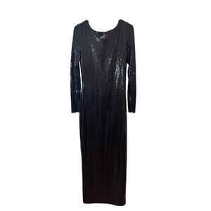 BCBG Maxazria Sz S Sheridan Backless Sequin Black Long Dress Gown Longsleeve