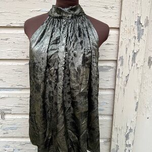 BCBG Maxazria NYE Party Gold Lame Metallic Halter High Neck Top Shirt Blouse M