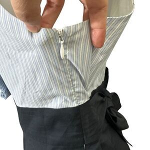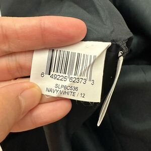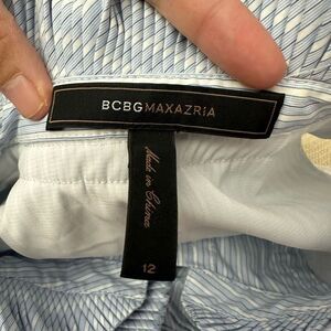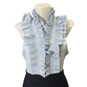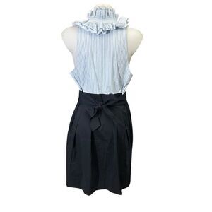 BCBG Maxazria Navy White Ruffle Pleated Sleeveless Mini Dress Tie Back sz 12