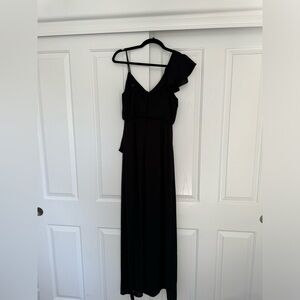 BCBG Maxazria One-Shoulder Long Ruffle Dress with Slit