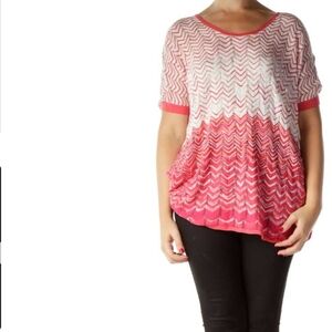 BCBG Maxazria Pink &White Knit Sweater Top Azaeleacom OS One Size Fits All