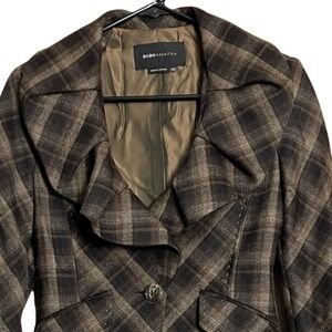BCBG Maxazria Plaid Ruffle Blazer XS