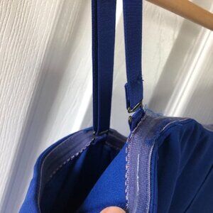 Beautiful royal blue dress. Features adjustable and removeable spaghetti straps to make it strapless, high low draped hemline, rubber lining to bust and side and back ribbing to bust for support. Machine washable.
