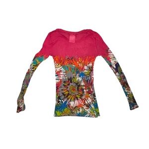 BCBG Maxazria Semi Sheer Bodycon Long Sleeve Shirt Multicolor Tie Dye Size Small