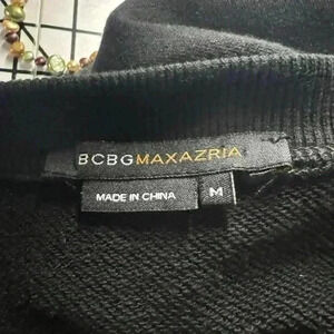 Elevate your wardrobe with this stunning BCBG Maxazria Short Sleeve Sweater Dress. This knee-length dress features a stylish zipper accent that adds a touch of edge to the classic design. The dress is made of a soft blend of polyester and cotton, ensuring a comfortable fit all day long. The solid black color and short sleeves make it a versatile piece that can be dressed up or down for any occasion. It's perfect for women of size medium and is a must-have addition to any fashion-forward wardrobe.