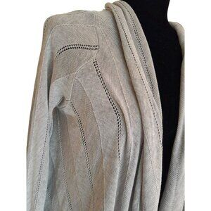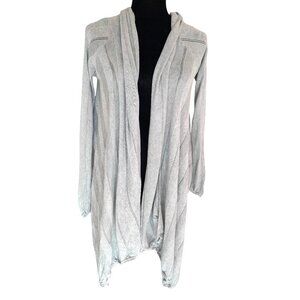BCBG Maxazria Silk Blend Lightweigt Hi Lo Asymmetrical Open Cardigan Dove Gray S