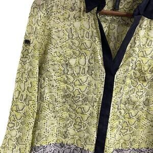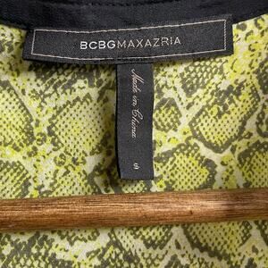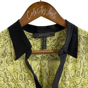 BCBG Maxazria Silk Blouse Top Print Green Black Semi Sheer Small