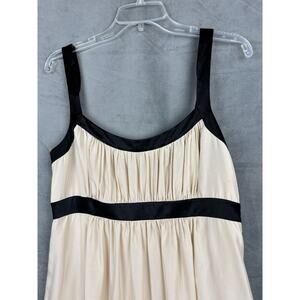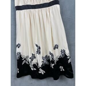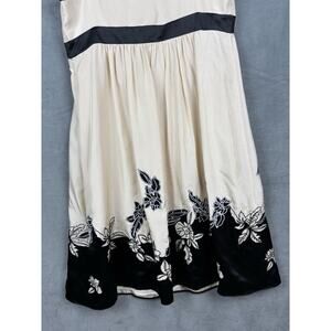 BCBG Maxazria Silk Dress Womens 10 Cream/Black Embroidered Floral Babydoll