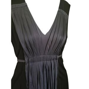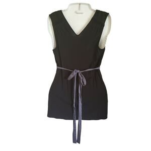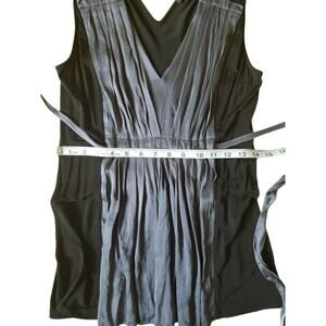 BCBG Maxazria Silk Sleeveless Vneck Pleated Belted Blouse Top Sz S. Black and grey.