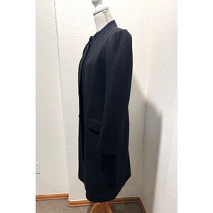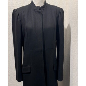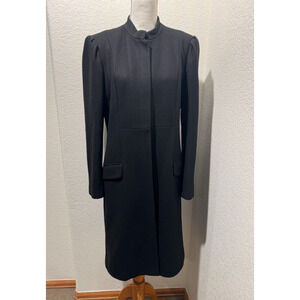 BCBG Maxazria Single Breasted Black Wool Long Coat Sz 12 Vintage Hook Eye Front