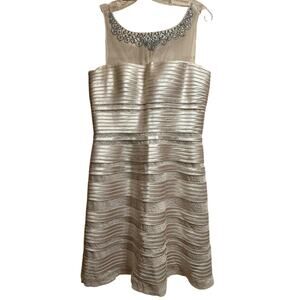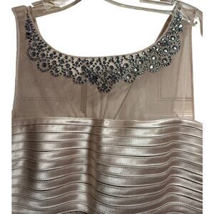 BCBG Maxazria Sleeveless Champagne Layered Lace Mini Dress - Size 10