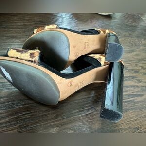 BCBG Maxazria Stack Heel Sandal Pumps Multi Black Brown Camel Animal Print 7M
