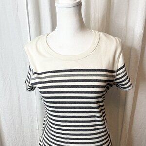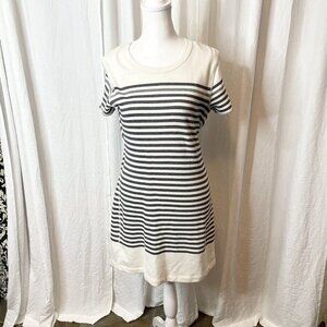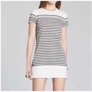 BCBG Maxazria Striped Low Back Dress Size XS Short Sleeve Mini Cream BlackSize XS