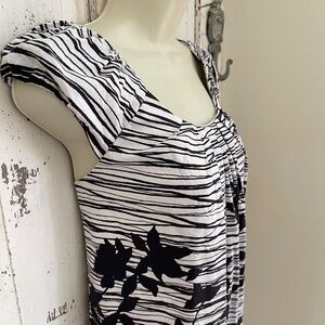 BCBG Max Azria Woman's Black White Striped Floral Casual Shift Dress