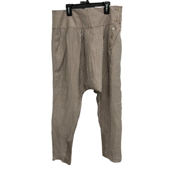BCBG Maxazria Taupe High Waisted Tapered Pants Button Detail Sz 8