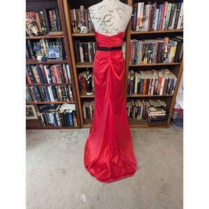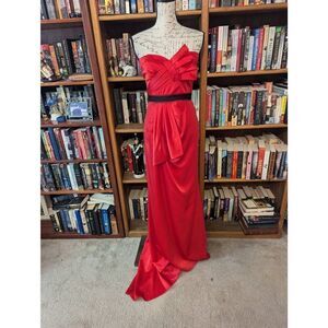 BCBG Maxazria Women’s 4 Red Strapless Maxi Dress Gown with Train