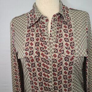 BCBG Maxazria Womens Long Sleeve Snap Up Blouse Size L