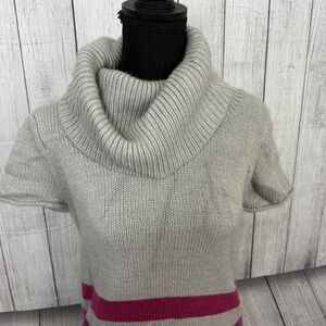 BCBG Maxazria Women's Medium Gray and Pink Turtleneck Short Sleeve Sweater 90's