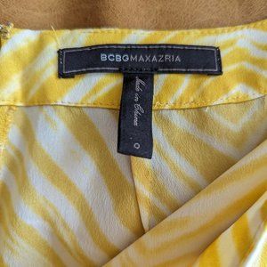 BCBG Maxazria Women's Skirt Size 0, Yellow Zebra Ruffle Short Mini Zip & Hook