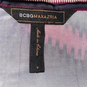 BCBG Maxazria Women's Small S Pink Black Taupe Gray Abstract Faux Wrap Top