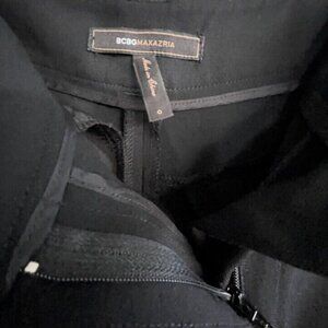 BCBG Maxazria Wool Pleated Cropped Pants Pockets Black Tapered Pleated Front 27"