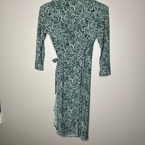 BCBG Maxazria Wrap Green and White Abstract Print Dress with Tie at side size S