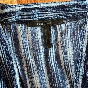 BCBG Maxazria Faux Wrap V-Neck Jersey Dress|Pacific Blue Combo Color|Size Small
